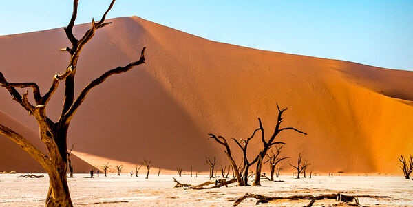 Namibia Sand Sea is truly unique in that it is the only coastal desert in the world with large sand dunes. These dunes somewhat influence the weather as they stand between the cooler water-laden air carried towards the land by strong winds and the warm, dry air of the desert, therefore causing dense fog and strong currents. The coastline is sometimes called the 'Skeleton Coast' because of how many shipwrecks can be found peppered along it, some as many as 50m (55 yards) inland due to the gradual reclaiming of land from the sea.