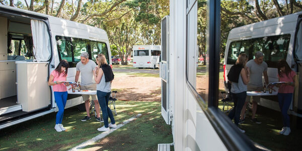 If you're setting up camp or parking a motorhome, you can choose a powered or non-powered site. Easy access to shared kitchen and bathroom facilities is generally available on these sites. Facilities at the parks vary from location to location with some being fairly basic and others having play areas, heated swimming pools and barbecues. Often you'll also have the use of a dining area and a comfortable TV lounge.