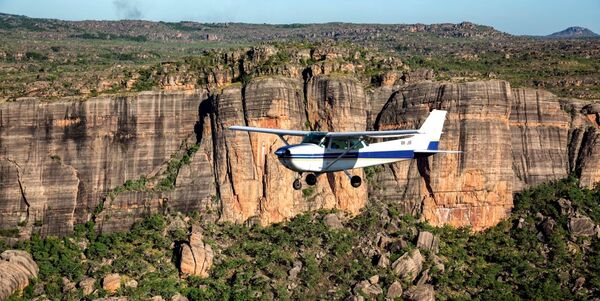 Enjoy aerial views over the UNESCO-listed Kakadu National Park from the unique vantage point of a helicopter. Flying East from the Jabiru Airfield, skirt the controversial Ranger Uranium Mine, and in minutes reach the border between Kakadu and Arnhem Land. The flat land ends and the Arnhem Land Plateau starts with its ancient sandstone escarpments. Continue through the Magela Gorge before exploring Dinosaur Valley.